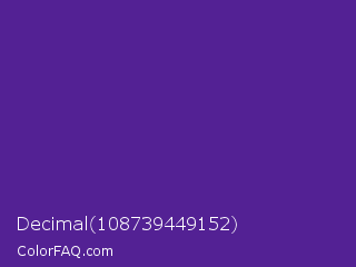 Decimal 108739449152 Color is a normal violet color and the nearest color is Daisy Bush #4f2398. Hex code #532194 and RGB value is rgb(83,33,148). In RGB color space, this color is composed of 33% red, 13% green, 58% blue, In CMYK color space, this color is composed of 44% cyan, 78% magenta, 0% yellow , 42% black , In HSL color space, this color has a hue angle of 266° , 64% saturation and 35% lightness.