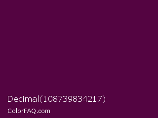 Decimal 108739834217 Color is a very dark magenta color and the nearest color is Mulberry Wood #5c0536. Hex code #540441 and RGB value is rgb(84,4,65). In RGB color space, this color is composed of 33% red, 2% green, 25% blue, In CMYK color space, this color is composed of 0% cyan, 95% magenta, 23% yellow , 67% black , In HSL color space, this color has a hue angle of 314° , 91% saturation and 17% lightness.