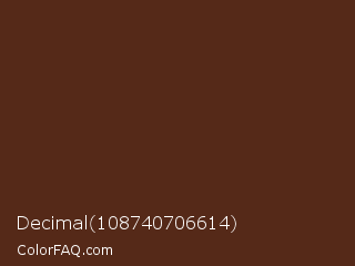 Decimal 108740706614 Color is a very dark orange color and the nearest color is Caput Mortuum #592720. Hex code #552918 and RGB value is rgb(85,41,24). In RGB color space, this color is composed of 33% red, 16% green, 9% blue, In CMYK color space, this color is composed of 0% cyan, 52% magenta, 72% yellow , 67% black , In HSL color space, this color has a hue angle of 17° , 56% saturation and 21% lightness.