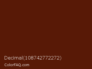 Decimal 108742772272 Color is a very dark red color and the nearest color is French Puce #4e1609. Hex code #581906 and RGB value is rgb(88,25,6). In RGB color space, this color is composed of 35% red, 10% green, 2% blue, In CMYK color space, this color is composed of 0% cyan, 72% magenta, 93% yellow , 65% black , In HSL color space, this color has a hue angle of 14° , 87% saturation and 18% lightness.
