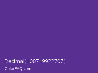 Decimal 108749922707 Color is a normal violet color and the nearest color is Blue Magenta Violet #553592. Hex code #593091 and RGB value is rgb(89,48,145). In RGB color space, this color is composed of 35% red, 19% green, 57% blue, In CMYK color space, this color is composed of 39% cyan, 67% magenta, 0% yellow , 43% black , In HSL color space, this color has a hue angle of 265° , 50% saturation and 38% lightness.