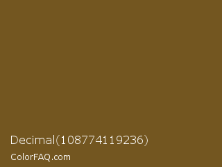 Decimal 108774119236 Color is a dark orange color and the nearest color is Field Drab #6c541e. Hex code #735620 and RGB value is rgb(115,86,32). In RGB color space, this color is composed of 45% red, 34% green, 13% blue, In CMYK color space, this color is composed of 0% cyan, 25% magenta, 72% yellow , 55% black , In HSL color space, this color has a hue angle of 39° , 56% saturation and 29% lightness.