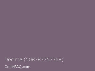 Decimal 108783757368 Color is a normal magenta color and the nearest color is Old Lavender #796878. Hex code #786376 and RGB value is rgb(120,99,118). In RGB color space, this color is composed of 47% red, 39% green, 46% blue, In CMYK color space, this color is composed of 0% cyan, 18% magenta, 2% yellow , 53% black , In HSL color space, this color has a hue angle of 306° , 10% saturation and 43% lightness.