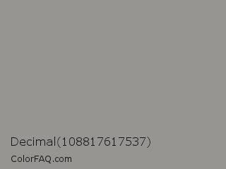 Decimal 108817617537 Color is a normal orange color and the nearest color is Mountain Mist #959396. Hex code #979591 and RGB value is rgb(151,149,145). In RGB color space, this color is composed of 59% red, 58% green, 57% blue, In CMYK color space, this color is composed of 0% cyan, 1% magenta, 4% yellow , 41% black , In HSL color space, this color has a hue angle of 40° , 3% saturation and 58% lightness.