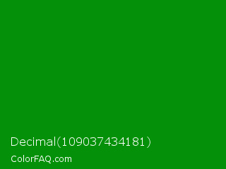 Decimal 109037434181 Color is a dark green color and the nearest color is Islamic Green #009000. Hex code #049109 and RGB value is rgb(4,145,9). In RGB color space, this color is composed of 2% red, 57% green, 4% blue, In CMYK color space, this color is composed of 97% cyan, 0% magenta, 94% yellow , 43% black , In HSL color space, this color has a hue angle of 122° , 95% saturation and 29% lightness.