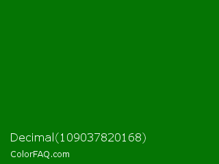 Decimal 109037820168 Color is a dark green color and the nearest color is Office Green #008000. Hex code #057504 and RGB value is rgb(5,117,4). In RGB color space, this color is composed of 2% red, 46% green, 2% blue, In CMYK color space, this color is composed of 96% cyan, 0% magenta, 97% yellow , 54% black , In HSL color space, this color has a hue angle of 119° , 93% saturation and 24% lightness.