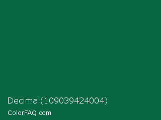 Decimal 109039424004 Color is a very dark green color and the nearest color is Cadmium Green #006b3c. Hex code #076644 and RGB value is rgb(7,102,68). In RGB color space, this color is composed of 3% red, 40% green, 27% blue, In CMYK color space, this color is composed of 93% cyan, 0% magenta, 33% yellow , 60% black , In HSL color space, this color has a hue angle of 159° , 87% saturation and 21% lightness.