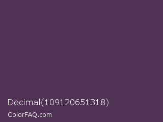 Decimal 109120651318 Color is a dark magenta color and the nearest color is Voodoo #533455. Hex code #503254 and RGB value is rgb(80,50,84). In RGB color space, this color is composed of 31% red, 20% green, 33% blue, In CMYK color space, this color is composed of 5% cyan, 40% magenta, 0% yellow , 67% black , In HSL color space, this color has a hue angle of 293° , 25% saturation and 26% lightness.