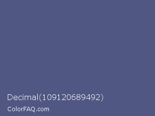 Decimal 109120689492 Color is a normal blue color and the nearest color is Purple Navy #4e5180. Hex code #505782 and RGB value is rgb(80,87,130). In RGB color space, this color is composed of 31% red, 34% green, 51% blue, In CMYK color space, this color is composed of 38% cyan, 33% magenta, 0% yellow , 49% black , In HSL color space, this color has a hue angle of 232° , 24% saturation and 41% lightness.