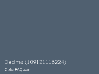Decimal 109121116224 Color is a normal blue color and the nearest color is Black Coral #54626f. Hex code #506070 and RGB value is rgb(80,96,112). In RGB color space, this color is composed of 31% red, 38% green, 44% blue, In CMYK color space, this color is composed of 29% cyan, 14% magenta, 0% yellow , 56% black , In HSL color space, this color has a hue angle of 210° , 17% saturation and 38% lightness.