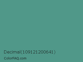 Decimal 109121200641 Color is a normal cyan color and the nearest color is Patina #639a8f. Hex code #509889 and RGB value is rgb(80,152,137). In RGB color space, this color is composed of 31% red, 60% green, 54% blue, In CMYK color space, this color is composed of 47% cyan, 0% magenta, 10% yellow , 40% black , In HSL color space, this color has a hue angle of 168° , 31% saturation and 45% lightness.