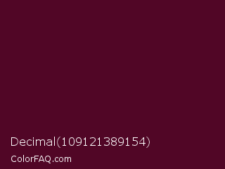 Decimal 109121389154 Color is a very dark rose color and the nearest color is Castro #52001f. Hex code #510626 and RGB value is rgb(81,6,38). In RGB color space, this color is composed of 32% red, 2% green, 15% blue, In CMYK color space, this color is composed of 0% cyan, 93% magenta, 53% yellow , 68% black , In HSL color space, this color has a hue angle of 334° , 86% saturation and 17% lightness.