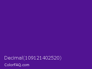 Decimal 109121402520 Color is a normal violet color and the nearest color is Daisy Bush #4f2398. Hex code #511392 and RGB value is rgb(81,19,146). In RGB color space, this color is composed of 32% red, 7% green, 57% blue, In CMYK color space, this color is composed of 45% cyan, 87% magenta, 0% yellow , 43% black , In HSL color space, this color has a hue angle of 269° , 77% saturation and 32% lightness.