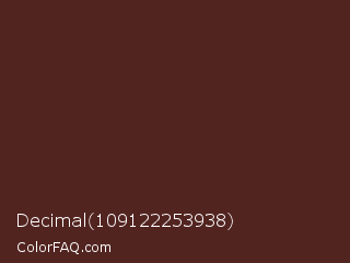 Decimal 109122253938 Color is a very dark red color and the nearest color is Caput Mortuum #592720. Hex code #522420 and RGB value is rgb(82,36,32). In RGB color space, this color is composed of 32% red, 14% green, 13% blue, In CMYK color space, this color is composed of 0% cyan, 56% magenta, 61% yellow , 68% black , In HSL color space, this color has a hue angle of 5° , 44% saturation and 22% lightness.