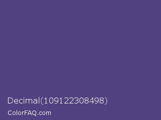 Decimal 109122308498 Color is a normal indigo color and the nearest color is Cyber Grape #58427c. Hex code #524180 and RGB value is rgb(82,65,128). In RGB color space, this color is composed of 32% red, 25% green, 50% blue, In CMYK color space, this color is composed of 36% cyan, 49% magenta, 0% yellow , 50% black , In HSL color space, this color has a hue angle of 256° , 33% saturation and 38% lightness.