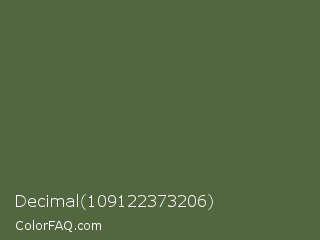 Decimal 109122373206 Color is a normal green color and the nearest color is Chalet Green #516e3d. Hex code #526740 and RGB value is rgb(82,103,64). In RGB color space, this color is composed of 32% red, 40% green, 25% blue, In CMYK color space, this color is composed of 20% cyan, 0% magenta, 38% yellow , 60% black , In HSL color space, this color has a hue angle of 92° , 23% saturation and 33% lightness.