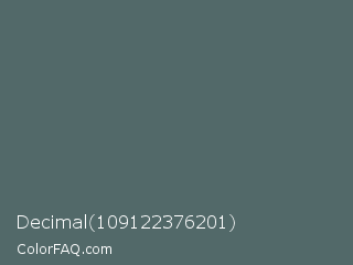 Decimal 109122376201 Color is a normal cyan color and the nearest color is Stormcloud #4f666a. Hex code #526969 and RGB value is rgb(82,105,105). In RGB color space, this color is composed of 32% red, 41% green, 41% blue, In CMYK color space, this color is composed of 22% cyan, 0% magenta, 0% yellow , 59% black , In HSL color space, this color has a hue angle of 180° , 12% saturation and 37% lightness.