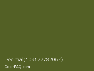 Decimal 109122782067 Color is a dark lime color and the nearest color is Dark Moss Green #4a5d23. Hex code #536025 and RGB value is rgb(83,96,37). In RGB color space, this color is composed of 33% red, 38% green, 15% blue, In CMYK color space, this color is composed of 14% cyan, 0% magenta, 61% yellow , 62% black , In HSL color space, this color has a hue angle of 73° , 44% saturation and 26% lightness.