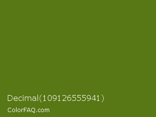 Decimal 109126555941 Color is a dark lime color and the nearest color is Fern Frond #657220. Hex code #587715 and RGB value is rgb(88,119,21). In RGB color space, this color is composed of 35% red, 47% green, 8% blue, In CMYK color space, this color is composed of 26% cyan, 0% magenta, 82% yellow , 53% black , In HSL color space, this color has a hue angle of 79° , 70% saturation and 27% lightness.