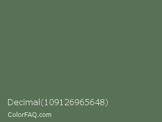 Decimal 109126965648 Color is a normal green color and the nearest color is Cactus #587156. Hex code #597156 and RGB value is rgb(89,113,86). In RGB color space, this color is composed of 35% red, 44% green, 34% blue, In CMYK color space, this color is composed of 21% cyan, 0% magenta, 24% yellow , 56% black , In HSL color space, this color has a hue angle of 113° , 14% saturation and 39% lightness.
