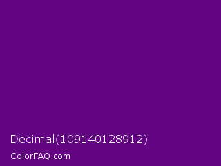 Decimal 109140128912 Color is a dark purple color and the nearest color is Purple #660099. Hex code #630482 and RGB value is rgb(99,4,130). In RGB color space, this color is composed of 39% red, 2% green, 51% blue, In CMYK color space, this color is composed of 24% cyan, 97% magenta, 0% yellow , 49% black , In HSL color space, this color has a hue angle of 285° , 94% saturation and 26% lightness.