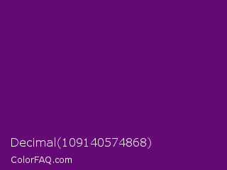 Decimal 109140574868 Color is a dark purple color and the nearest color is Honey Flower #4f1c70. Hex code #640976 and RGB value is rgb(100,9,118). In RGB color space, this color is composed of 39% red, 4% green, 46% blue, In CMYK color space, this color is composed of 15% cyan, 92% magenta, 0% yellow , 54% black , In HSL color space, this color has a hue angle of 290° , 86% saturation and 25% lightness.