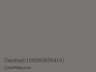 Decimal 109260976419 Color is a normal orange color and the nearest color is Sonic Silver #757575. Hex code #777573 and RGB value is rgb(119,117,115). In RGB color space, this color is composed of 47% red, 46% green, 45% blue, In CMYK color space, this color is composed of 0% cyan, 2% magenta, 3% yellow , 53% black , In HSL color space, this color has a hue angle of 30° , 2% saturation and 46% lightness.