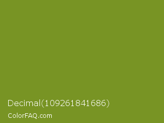 Decimal 109261841686 Color is a normal lime color and the nearest color is Wasabi #788a25. Hex code #789424 and RGB value is rgb(120,148,36). In RGB color space, this color is composed of 47% red, 58% green, 14% blue, In CMYK color space, this color is composed of 19% cyan, 0% magenta, 76% yellow , 42% black , In HSL color space, this color has a hue angle of 75° , 61% saturation and 36% lightness.