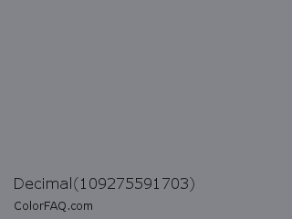 Decimal 109275591703 Color is a normal blue color and the nearest color is Gunsmoke #828685. Hex code #838489 and RGB value is rgb(131,132,137). In RGB color space, this color is composed of 51% red, 52% green, 54% blue, In CMYK color space, this color is composed of 4% cyan, 4% magenta, 0% yellow , 46% black , In HSL color space, this color has a hue angle of 230° , 2% saturation and 53% lightness.