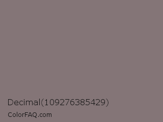 Decimal 109276385429 Color is a normal red color and the nearest color is Empress #817377. Hex code #847577 and RGB value is rgb(132,117,119). In RGB color space, this color is composed of 52% red, 46% green, 47% blue, In CMYK color space, this color is composed of 0% cyan, 11% magenta, 10% yellow , 48% black , In HSL color space, this color has a hue angle of 352° , 6% saturation and 49% lightness.