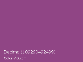 Decimal 109290492499 Color is a normal magenta color and the nearest color is Plum #8e4585. Hex code #904585 and RGB value is rgb(144,69,133). In RGB color space, this color is composed of 56% red, 27% green, 52% blue, In CMYK color space, this color is composed of 0% cyan, 52% magenta, 8% yellow , 44% black , In HSL color space, this color has a hue angle of 309° , 35% saturation and 42% lightness.