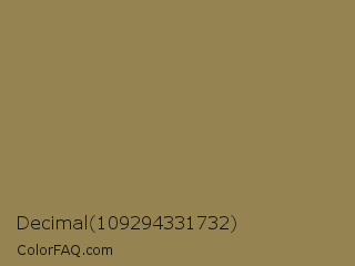 Decimal 109294331732 Color is a normal orange color and the nearest color is Dark Tan #918151. Hex code #958352 and RGB value is rgb(149,131,82). In RGB color space, this color is composed of 58% red, 51% green, 32% blue, In CMYK color space, this color is composed of 0% cyan, 12% magenta, 45% yellow , 42% black , In HSL color space, this color has a hue angle of 44° , 29% saturation and 45% lightness.