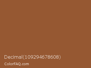 Decimal 109294678608 Color is a normal orange color and the nearest color is Potters Clay #8c5738. Hex code #965832 and RGB value is rgb(150,88,50). In RGB color space, this color is composed of 59% red, 35% green, 20% blue, In CMYK color space, this color is composed of 0% cyan, 41% magenta, 67% yellow , 41% black , In HSL color space, this color has a hue angle of 23° , 50% saturation and 39% lightness.