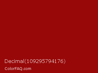 Decimal 109295794176 Color is a normal red color and the nearest color is Sangria #92000a. Hex code #980808 and RGB value is rgb(152,8,8). In RGB color space, this color is composed of 60% red, 3% green, 3% blue, In CMYK color space, this color is composed of 0% cyan, 95% magenta, 95% yellow , 40% black , In HSL color space, this color has a hue angle of 0° , 90% saturation and 31% lightness.