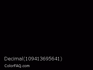 Decimal 109413695641 Color is a almost black magenta color and the nearest color is Rich Black FOGRA39 #010203. Hex code #030003 and RGB value is rgb(3,0,3). In RGB color space, this color is composed of 1% red, 0% green, 1% blue, In CMYK color space, this color is composed of 0% cyan, 100% magenta, 0% yellow , 99% black , In HSL color space, this color has a hue angle of 300° , 100% saturation and 1% lightness.
