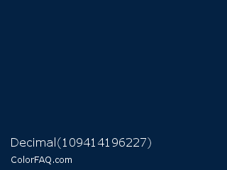 Decimal 109414196227 Color is a very dark blue color and the nearest color is Oxford Blue #002147. Hex code #042243 and RGB value is rgb(4,34,67). In RGB color space, this color is composed of 2% red, 13% green, 26% blue, In CMYK color space, this color is composed of 94% cyan, 49% magenta, 0% yellow , 74% black , In HSL color space, this color has a hue angle of 211° , 89% saturation and 14% lightness.