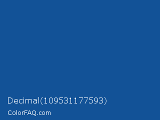Decimal 109531177593 Color is a normal blue color and the nearest color is Yale Blue #0f4d92. Hex code #125297 and RGB value is rgb(18,82,151). In RGB color space, this color is composed of 7% red, 32% green, 59% blue, In CMYK color space, this color is composed of 88% cyan, 46% magenta, 0% yellow , 41% black , In HSL color space, this color has a hue angle of 211° , 79% saturation and 33% lightness.