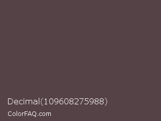 Decimal 109608275988 Color is a dark red color and the nearest color is Emperor #514649. Hex code #554246 and RGB value is rgb(85,66,70). In RGB color space, this color is composed of 33% red, 26% green, 27% blue, In CMYK color space, this color is composed of 0% cyan, 22% magenta, 18% yellow , 67% black , In HSL color space, this color has a hue angle of 347° , 13% saturation and 30% lightness.