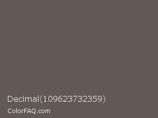 Decimal 109623732359 Color is a normal red color and the nearest color is Chicago #5d5c58. Hex code #625957 and RGB value is rgb(98,89,87). In RGB color space, this color is composed of 38% red, 35% green, 34% blue, In CMYK color space, this color is composed of 0% cyan, 9% magenta, 11% yellow , 62% black , In HSL color space, this color has a hue angle of 11° , 6% saturation and 36% lightness.