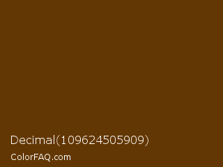 Decimal 109624505909 Color is a very dark orange color and the nearest color is Nutmeg Wood Finish #683600. Hex code #633703 and RGB value is rgb(99,55,3). In RGB color space, this color is composed of 39% red, 22% green, 1% blue, In CMYK color space, this color is composed of 0% cyan, 44% magenta, 97% yellow , 61% black , In HSL color space, this color has a hue angle of 33° , 94% saturation and 20% lightness.