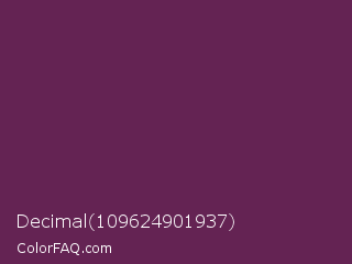 Decimal 109624901937 Color is a dark magenta color and the nearest color is Finn #692d54. Hex code #642353 and RGB value is rgb(100,35,83). In RGB color space, this color is composed of 39% red, 14% green, 33% blue, In CMYK color space, this color is composed of 0% cyan, 65% magenta, 17% yellow , 61% black , In HSL color space, this color has a hue angle of 316° , 48% saturation and 26% lightness.