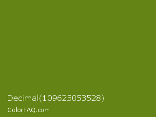 Decimal 109625053528 Color is a dark lime color and the nearest color is Olive Drab #6b8e23. Hex code #648516 and RGB value is rgb(100,133,22). In RGB color space, this color is composed of 39% red, 52% green, 9% blue, In CMYK color space, this color is composed of 25% cyan, 0% magenta, 83% yellow , 48% black , In HSL color space, this color has a hue angle of 78° , 72% saturation and 30% lightness.