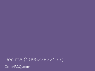 Decimal 109627872133 Color is a normal violet color and the nearest color is Dark Lavender #734f96. Hex code #685689 and RGB value is rgb(104,86,137). In RGB color space, this color is composed of 41% red, 34% green, 54% blue, In CMYK color space, this color is composed of 24% cyan, 37% magenta, 0% yellow , 46% black , In HSL color space, this color has a hue angle of 261° , 23% saturation and 44% lightness.