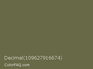 Decimal 109627916674 Color is a normal yellow color and the nearest color is Finch #626649. Hex code #686946 and RGB value is rgb(104,105,70). In RGB color space, this color is composed of 41% red, 41% green, 27% blue, In CMYK color space, this color is composed of 1% cyan, 0% magenta, 33% yellow , 59% black , In HSL color space, this color has a hue angle of 62° , 20% saturation and 34% lightness.