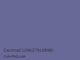 Decimal 109627916898 Color is a normal blue color and the nearest color is Dark Blue Gray #666699. Hex code #686996 and RGB value is rgb(104,105,150). In RGB color space, this color is composed of 41% red, 41% green, 59% blue, In CMYK color space, this color is composed of 31% cyan, 30% magenta, 0% yellow , 41% black , In HSL color space, this color has a hue angle of 239° , 18% saturation and 50% lightness.