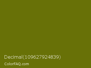 Decimal 109627924839 Color is a dark yellow color and the nearest color is Bronze Yellow #737000. Hex code #687107 and RGB value is rgb(104,113,7). In RGB color space, this color is composed of 41% red, 44% green, 3% blue, In CMYK color space, this color is composed of 8% cyan, 0% magenta, 94% yellow , 56% black , In HSL color space, this color has a hue angle of 65° , 88% saturation and 24% lightness.