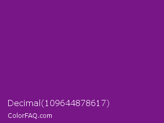 Decimal 109644878617 Color is a normal magenta color and the nearest color is Seance #731e8f. Hex code #781587 and RGB value is rgb(120,21,135). In RGB color space, this color is composed of 47% red, 8% green, 53% blue, In CMYK color space, this color is composed of 11% cyan, 84% magenta, 0% yellow , 47% black , In HSL color space, this color has a hue angle of 292° , 73% saturation and 31% lightness.