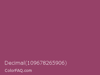 Decimal 109678265906 Color is a normal rose color and the nearest color is Vin Rouge #983d61. Hex code #964168 and RGB value is rgb(150,65,104). In RGB color space, this color is composed of 59% red, 25% green, 41% blue, In CMYK color space, this color is composed of 0% cyan, 57% magenta, 31% yellow , 41% black , In HSL color space, this color has a hue angle of 332° , 40% saturation and 42% lightness.