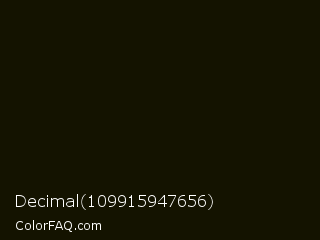 Decimal 109915947656 Color is a almost black yellow color and the nearest color is Green Waterloo #101405. Hex code #141300 and RGB value is rgb(20,19,0). In RGB color space, this color is composed of 8% red, 7% green, 0% blue, In CMYK color space, this color is composed of 0% cyan, 5% magenta, 100% yellow , 92% black , In HSL color space, this color has a hue angle of 57° , 100% saturation and 4% lightness.
