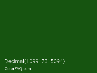 Decimal 109917315094 Color is a very dark green color and the nearest color is Parsley #134f19. Hex code #165410 and RGB value is rgb(22,84,16). In RGB color space, this color is composed of 9% red, 33% green, 6% blue, In CMYK color space, this color is composed of 74% cyan, 0% magenta, 81% yellow , 67% black , In HSL color space, this color has a hue angle of 115° , 68% saturation and 20% lightness.